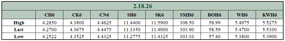 Grain Market Commentary 2/18/26