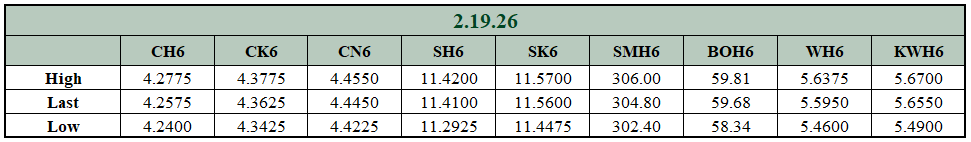 Grain Market Commentary 2/19/26